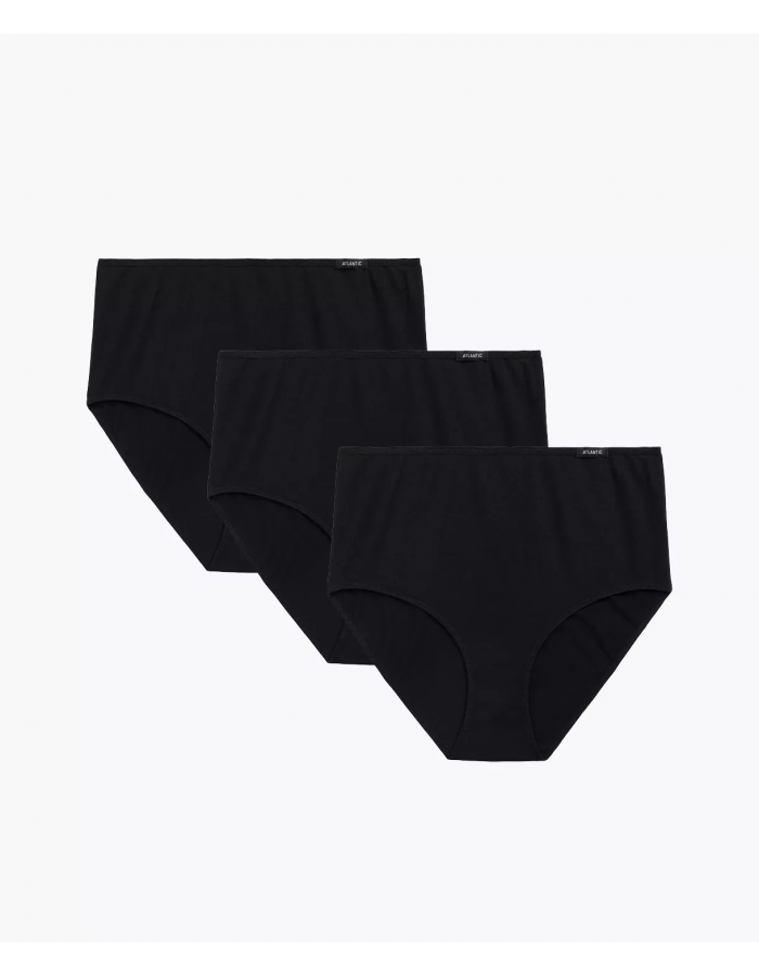 To figi damskie o najbardziej uniwersalnym charakterze, jaki możesz sobie wyobrazić. Majtki w kolorze czarnym są bardzo szerokie po bokach i wysoko zachodzą na brzuch, a w talii wykończone są miękką i nieuciskającą ciała gumą ozdobioną z lewej strony logo Atlantic.