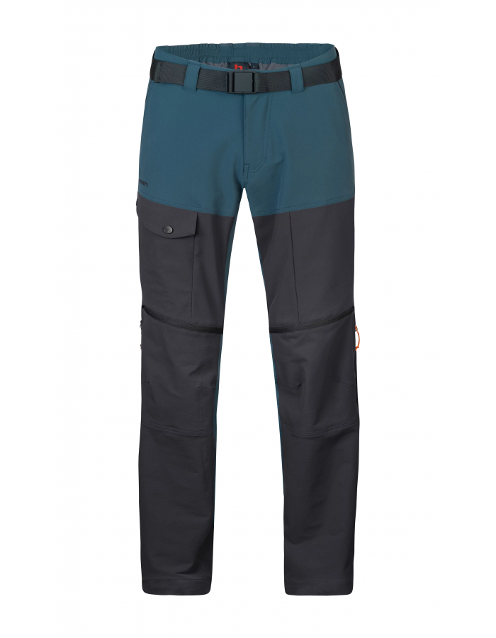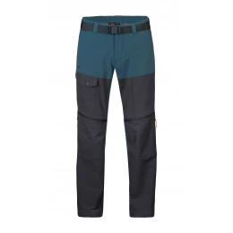 Pánské odepínatelné technické outdoorové kalhoty jsou vyrobeny z mechanicky odolného, větruvzdorného, trvale vodoodpudivého a prodyšného materiálu AFT Double Weave Pro. Povrchová úprava DWR - C0 bez PFC je šetrnější k životnímu prostředí a zajistí nenasákavost vrchního materiálu. Technický střih kalhot má šikmo řešené odepínatelné nohavice s bočním rozepínáním na zip. Odepnutím nohavic jsou z kalhot rázem parádní šortky s délkou lehce nad kolena. Šortky přesahují zip, což zamezuje případnému škrábání zipu. Nohavice mají anatomicky tvarovaná kolena a spodní kraj s regulací šířky na patent, který se přizpůsobí různé botě a potřebám. Kalhoty mají regulovatelnýobvod pasu páskem a disponují kombinací různých typů kapes v přední i zadní části kalhot. V přední části jsou dvě dostatečně hluboké a pohodlné kapsy, na stehnech dvě kapsy na zip. V zadní části pak kalhoty disponují dvěma níže posazenými hlubokými kapsami, které kromě praktické funkce mají i funkci designovou. Nový materiál AFT Double Weave Pro klade kromě již zmíněných technických parametrů důraz na aspekt udržitelné výroby. Materiál je navíc ošetřen povrchovou vodoodpudivou úpravou, která je bez fluorkarbonů, a tím je šetrnější k životnímu prostředí (PFC free). Certifikace Bluesign je zárukou transparentnosti a využití zdrojů šetrných k životnímu prostředí při výrobě. Kalhoty jsou ideální na vícedenní turistiku a náročný pohyb v horách.