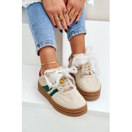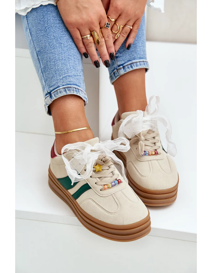 Modne sneakersy wykonane z eko zamszu to świetna propozycja dla miłośniczek wygody i stylowego wyglądu. Osadzone na platformie, nie tylko dodają kilku centymetrów wzrostu, ale także doskonale podkreślają nowoczesny charakter obuwia. Sznurowanie zostało urozmaicone uroczymi przypinkami, które nadają dziewczęcego uroku i oryginalności. Idealnie sprawdzą się zarówno w codziennych stylizacjach, jak i podczas spotkań z przyjaciółmi. Przy wyborze rozmiaru prosimy kierować tabelą rozmiarów.