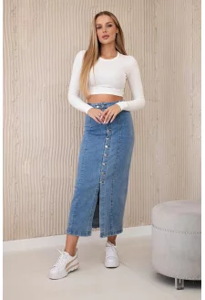 Ladies Long Wide Light Denim Skirt skyblue washed